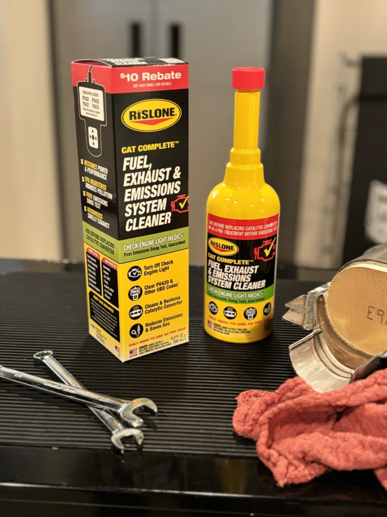 Clean your emissions system regularly. Every 5,000 miles, use Rislone Cat Complete® Fuel, Exhaust & Emissions System Cleaner (part #4720). It scrubs away carbon, soot, and oily residue, clears common OBD codes, turns off check engine lights, saves gas, and is guaranteed to help your vehicle pass emissions testing. Just pour it into your gas tank and drive – no tools, no shop visit. Use every 3-4 months and never have a problem with your CAT again.