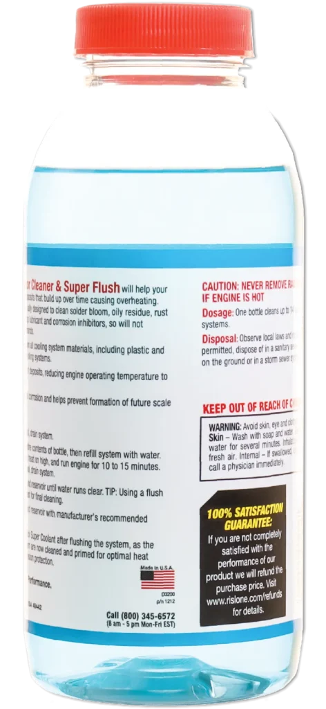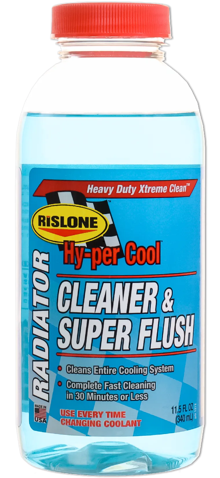Rislone® Hy-per Cool™ Radiator Cleaner & Super Flush will help your cooling system by removing deposits that build up over time causing overheating. Heavy duty formulation is specially designed to clean solder bloom, oily residue, rust and scale. Contains water pump lubricant and corrosion inhibitors, so it will not damage the pump like other brands.