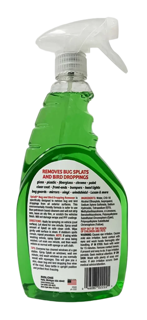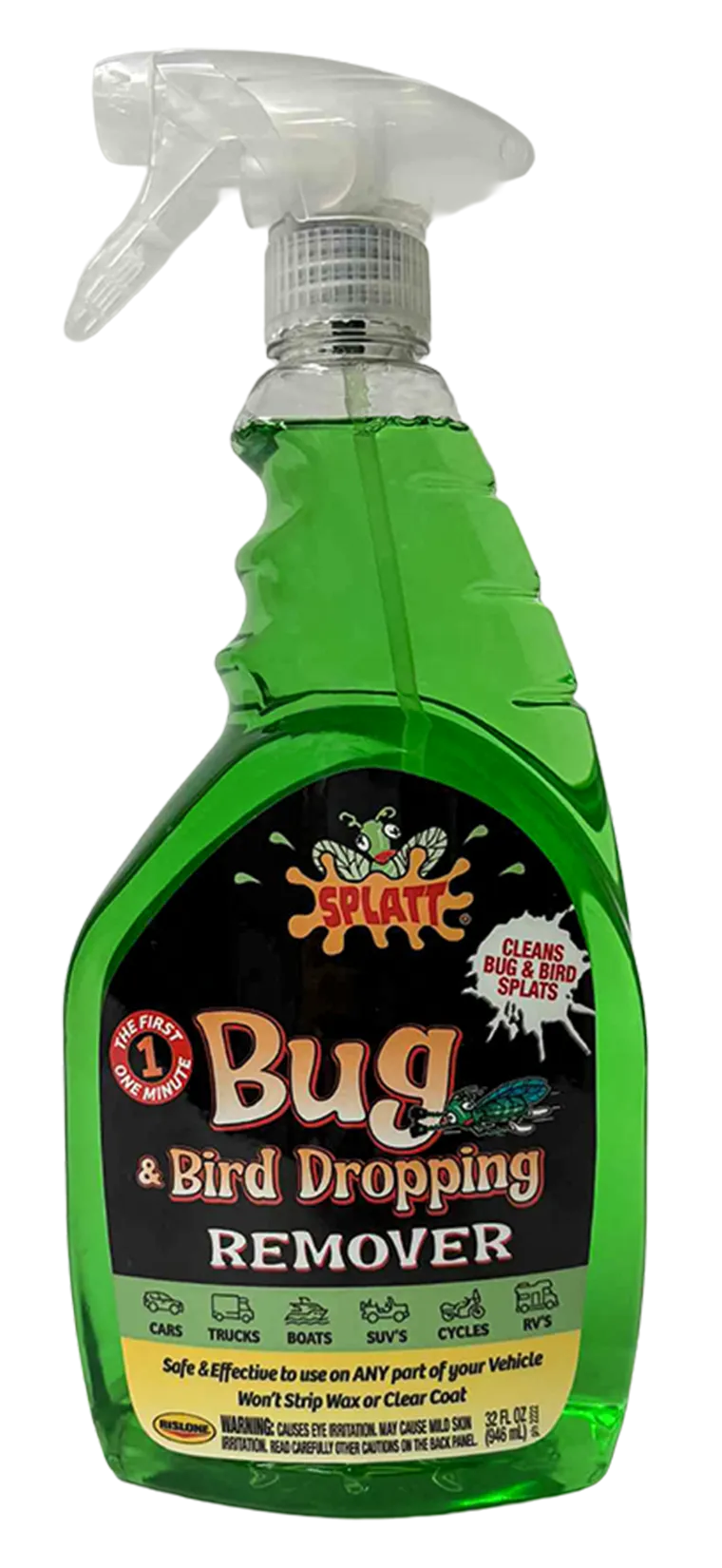 The legend has returned. Splatt! is back to eradicate bug guts and bird droppings fast. Spray it on, wait about a minute, wipe it clean. No greasy film. Won’t strip wax. Safe on paint, clear coat, glass, plastic, chrome, headlights, and bug guards. Safe for ceramic coatings and paint protection film (PPF). Use it at home or while on the road for instant clarity and a glossy, protected finish. One minute. Zero evidence. Keep the shine, ditch the mess.