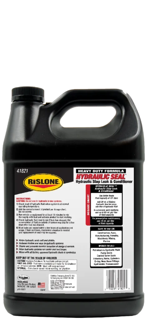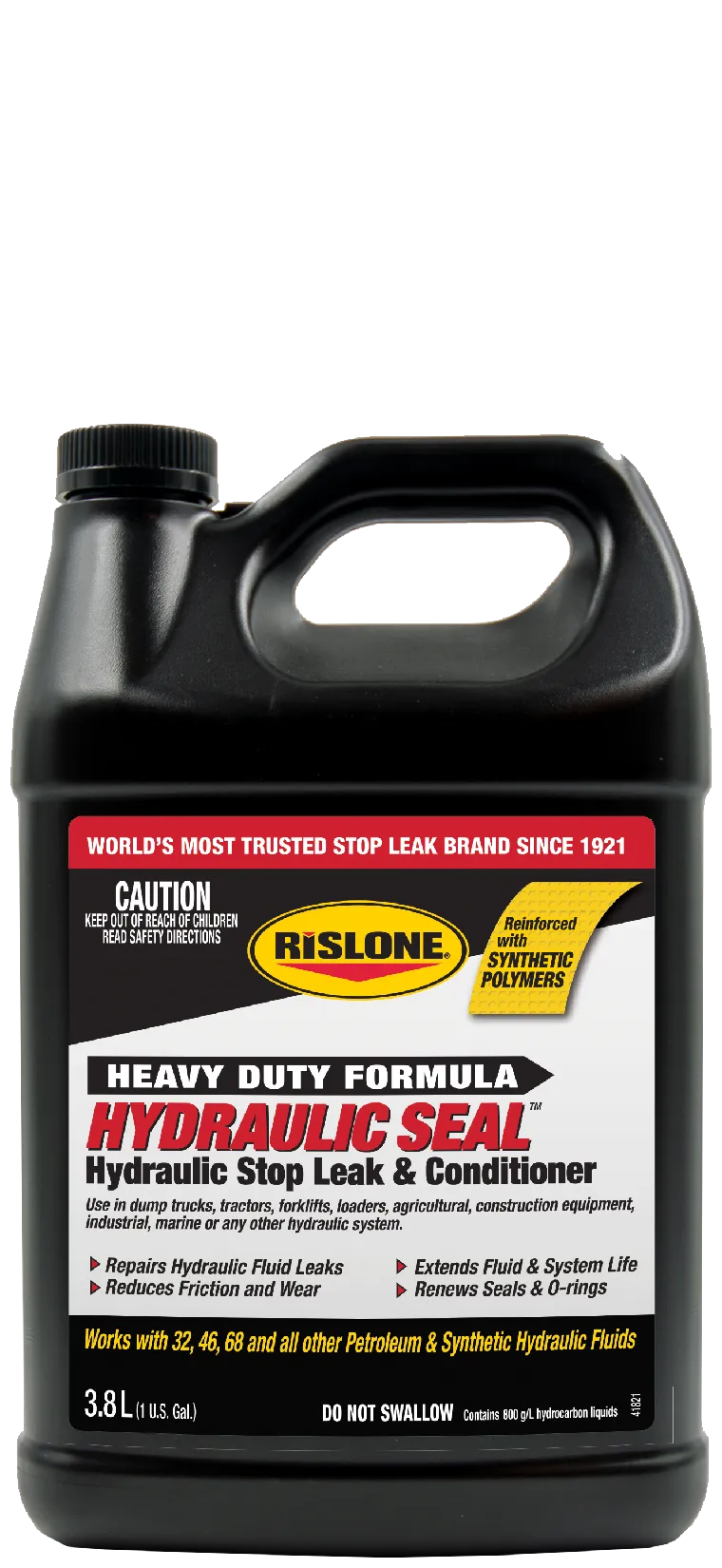 Rislone Heavy Duty Hydraulic Seal is specially designed to repair hydraulic fluid leaks, reduce friction/wear and renew seals and O-rings in hydraulic systems. This product is engineered to be professional-grade and is safe to use for consumer applications as well as commercial use cases. Rislone Hydraulic Seal works with all petroleum and synthetic fluids, pump seals, control valve seals, actuators, rams, cylinders, O-ring boss fittings and hydrostatic transmissions.